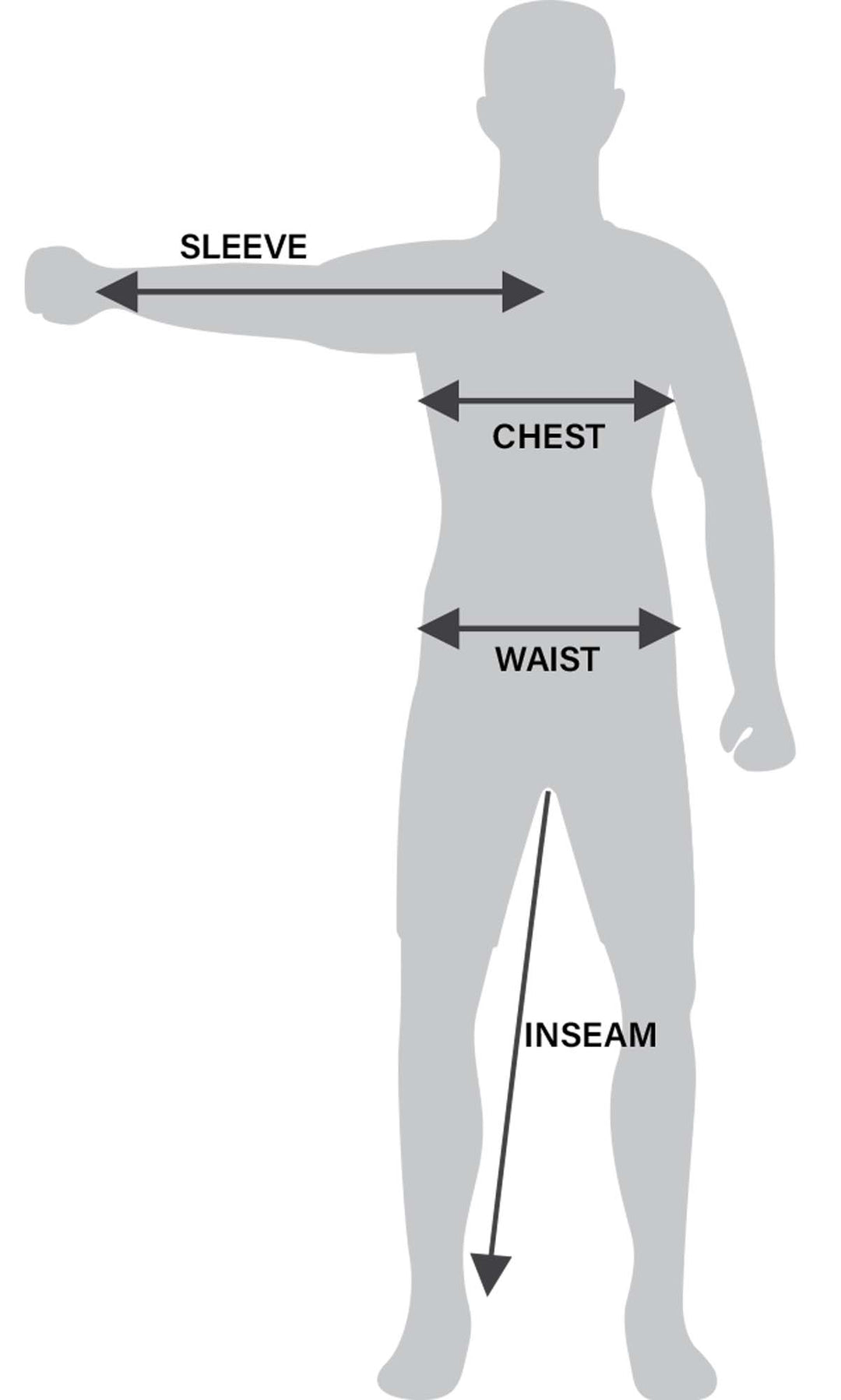 | CHEST | 30-32" | 34-36" | 38-40" | 42-44" | 46-48" | 50-52" | 54-56" | 58-60" | 62-64" | 66-68" |