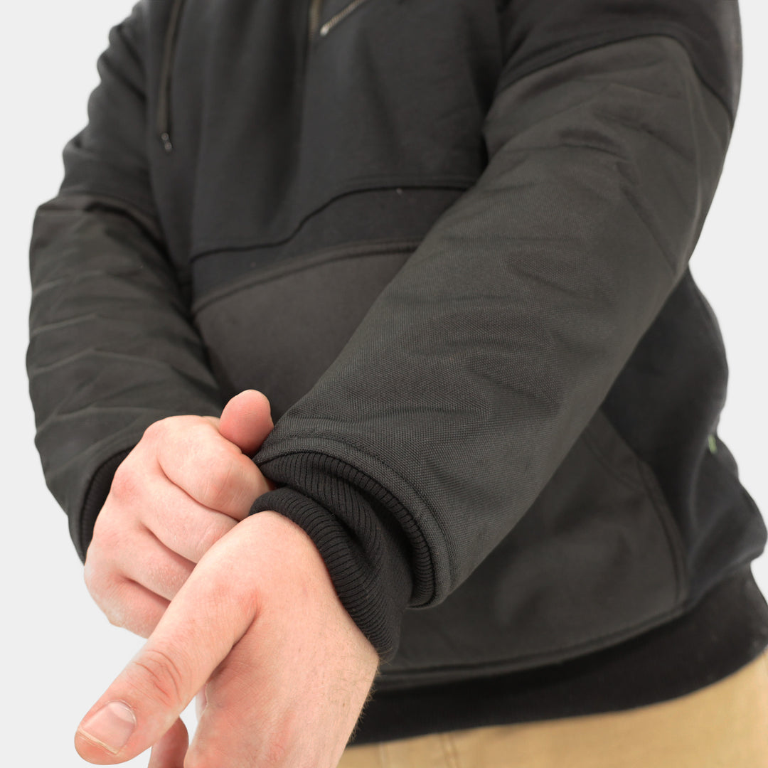 This hoodie is rugged, double-stitched for an extended lifetime, and reinforced with rigid Cordura fabric on the forearms and front pocket. It's surprisingly compact for the amount of warmth it produces. It's made to protect you in the cold and outlast aggressive work environments.